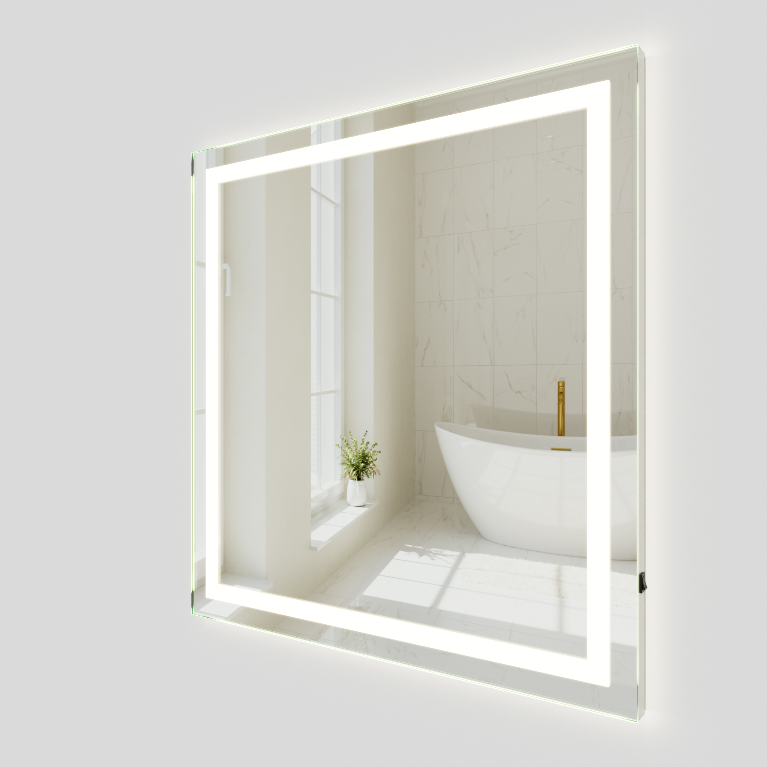 Hilton 34 in. W x 36 in. H Frameless LED Perimeter Lighted Bathroom Vanity Mirror with Dimmer and Defogger without button